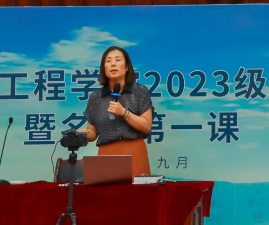 工程力学系副主任孙静老师从自身学习、工作经历出发,分享了自己的体验与感悟,勉励新生们树立对土木工程专业的热爱与认同,鼓励他们在今后学习中努力学习,致力追求卓越。