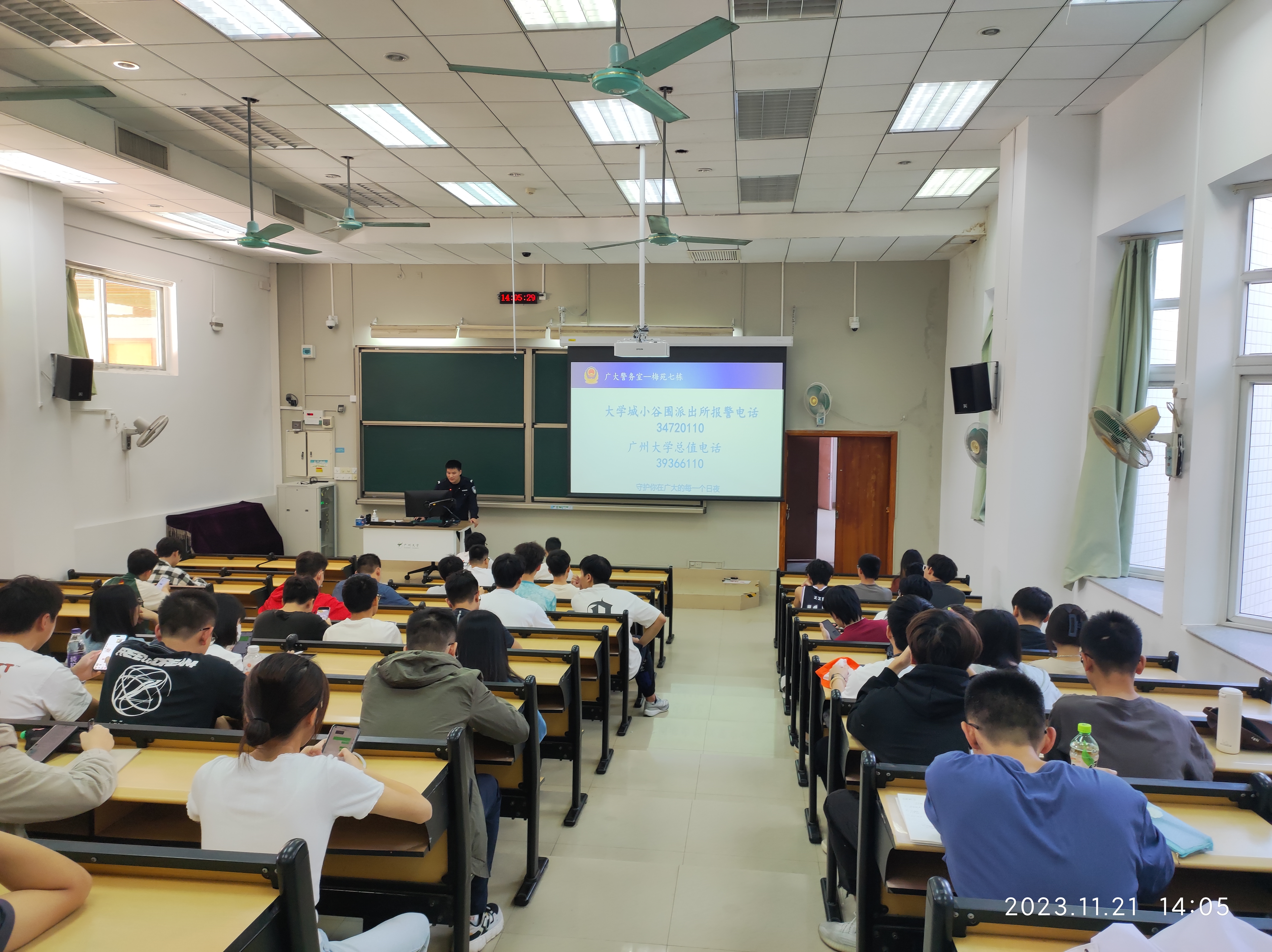 为加强学生安全教育,提高学生反诈安全意识,营造平安和谐校园,11月21日下午,我院邀请小谷围派出所陈警官,开展了“防范于心,反诈于行”反诈安全主题教育讲座,各班班长、团支书、安全委员等80余人参加。学校保卫处陈实老师、林俊福老师,学院辅导员段佩佩老师也出席了此次讲座。
