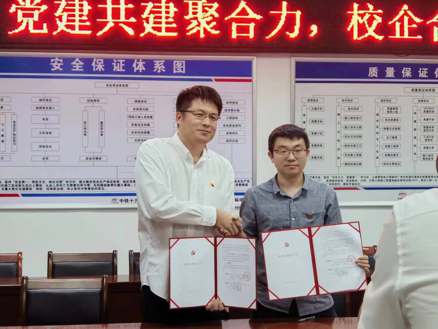 会上,中铁建十九局广州公司第二项目管理部万顷沙项目党支部与ylzzcom永利总站线路检测土木工程学院本科生第一党支部签订了党建共建协议,共同推进企业双方在党建工作研讨、校企深度合作、人才培养等方面创新发展、共建共赢。