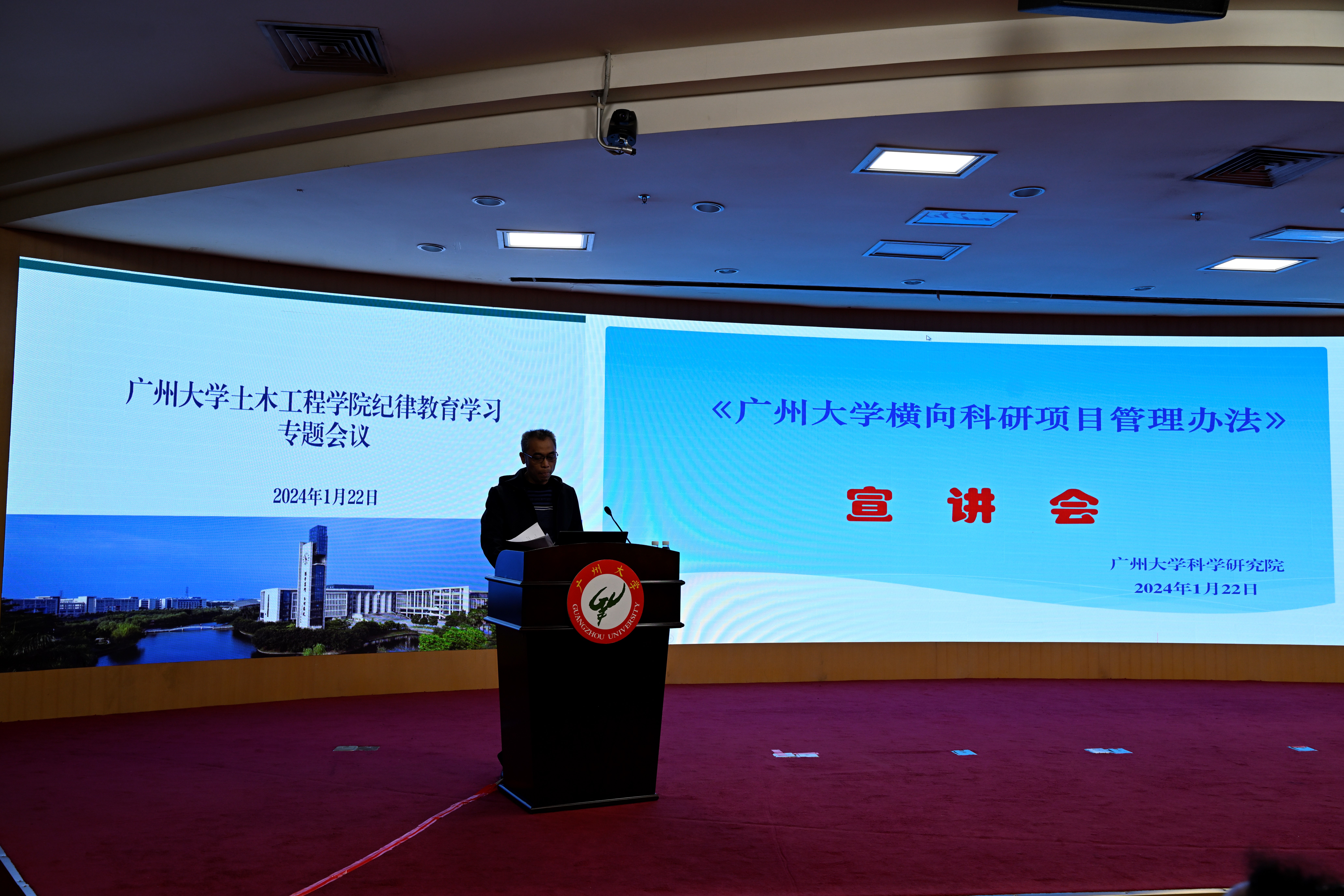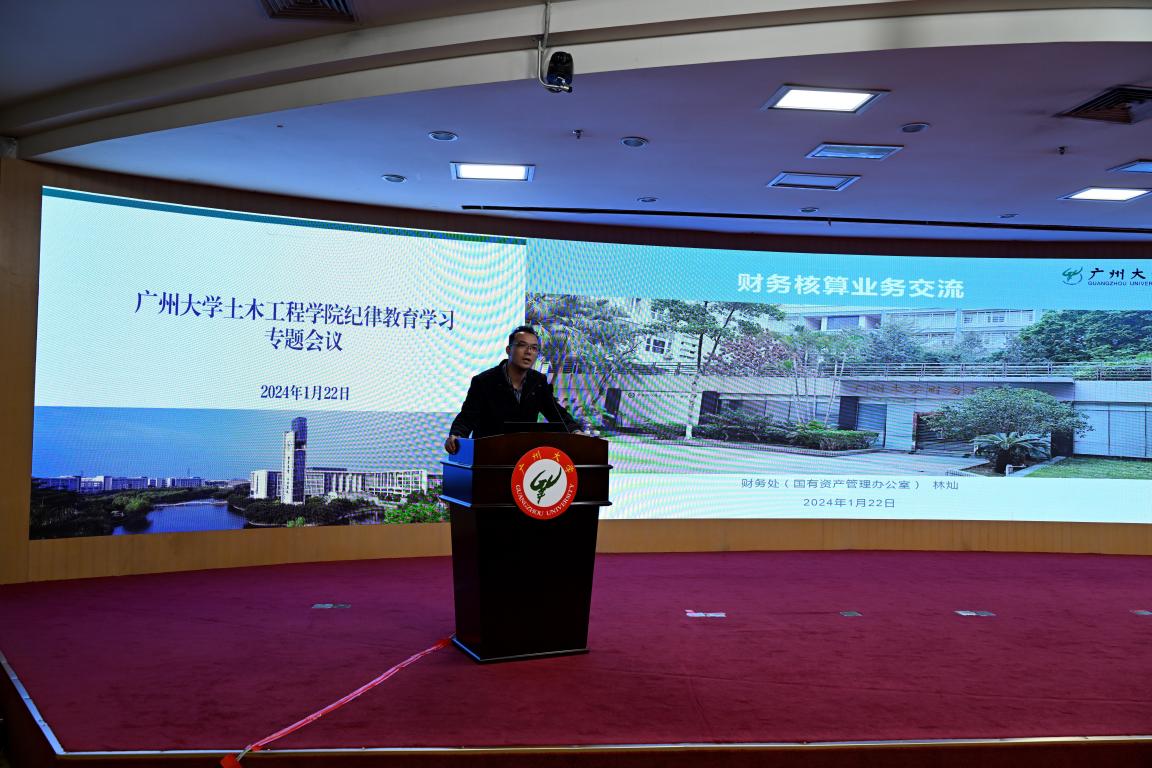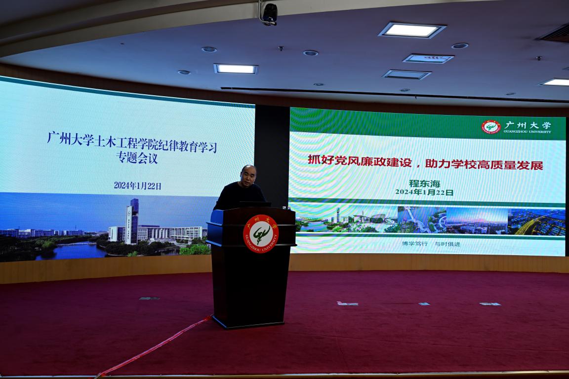 2024年1月22日,土木工程学院召开纪律教育学习专题会议。会议特别邀请校纪委程东海副书记、审计处姚俊生处长、科研院李小华副主任、财务处林灿副处长进行纪律教育提醒及相关政策宣讲。会议由学院党委书记罗迪主持,全院教职工参加会议。